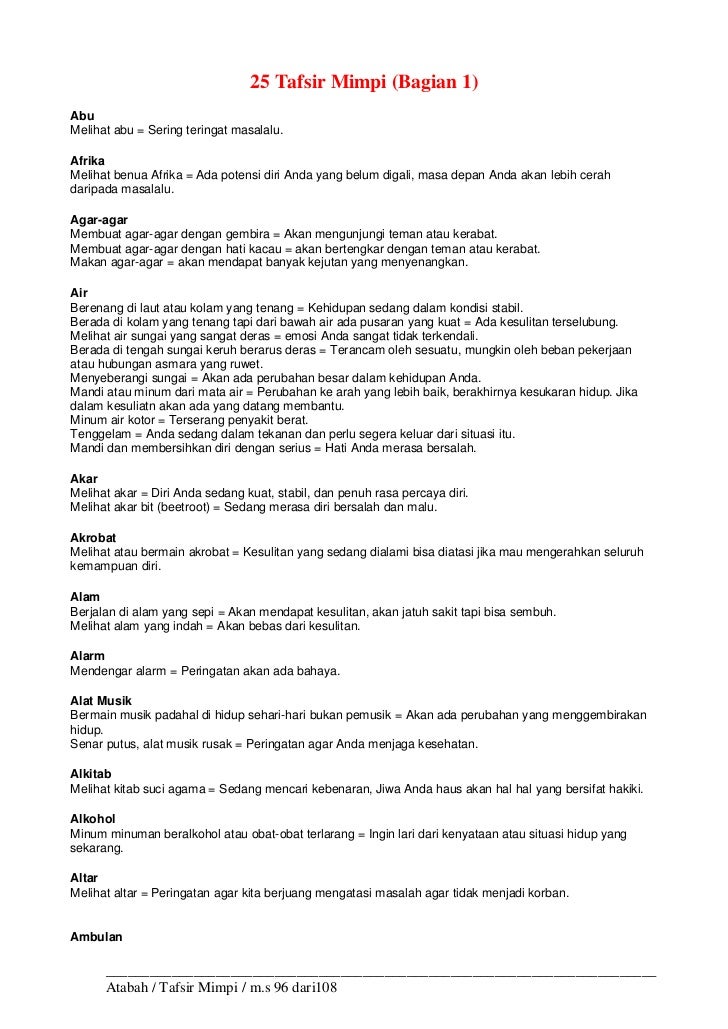 Download Kitab Tafsir Pdf (LENGKAP & GRATIS) oleh muhamadaljawi. Download Kitab Tafsir Pdf (LENGKAP & GRATIS) - kumpulan buku kitab tafsir nusantara dan luar negri yang paling terkenal dari ulama ternama dunia versi arab dan terjemahan akan teman teman dapatkan kali ini, karena ini merupakan bagian dari program download kitab gratis di. Tafsir Mimpi Menurut Al - Quràn dan As- Sunnah. rifqi fatih ahmad siti. Ustadz Abu Sa'ad al-Wa'izh berkata, "Pada prinsipnya mimpi yang baik itu bersumber dari aneka amal yang benar dan mengingatkan akan aneka akibat dari berbagai urusan. Dari mimpi yang baik itu muncullah aneka perintah, larangan, berita gembira, dan peringatan.
